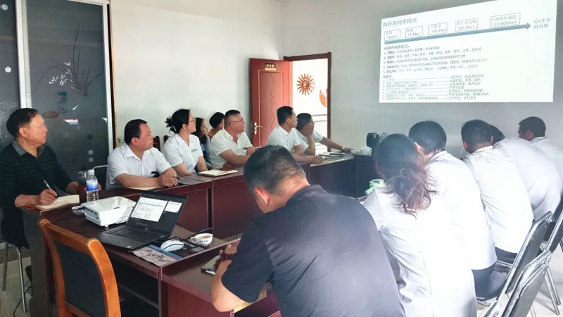 2022年6月9日,禮藍動保KA技術服務經理陶林先生在韓秀梅女士等陪同下,于鳴環農牧種禽公司二樓會議室進行了《白羽肉種雞飼養管理》與《農場生物安全體系構建》的專題培訓。鳴環農牧種禽公司的業務精英、檢測中心的業務主管以及鳴環農牧總經理孫惠軍等人參加了此次培訓。