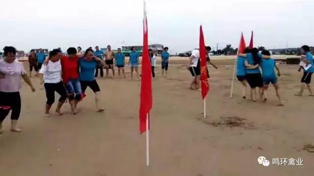 2017年8月19日下午,鳴環(huán)禽業(yè)在牟平區(qū)養(yǎng)馬島海水浴場組織沙灘拓展活動,來自種禽生產(chǎn)部、孵化廠、蓬萊分社、鳴達合作社、鳴康動物醫(yī)院及合作社各部門的50多名選手參加了此次活動。比賽項目有皮劃艇比賽、“三人四足”等,進一步激發(fā)了員工的團隊協(xié)作精神。