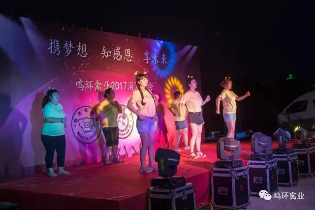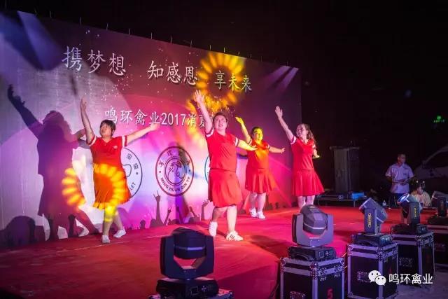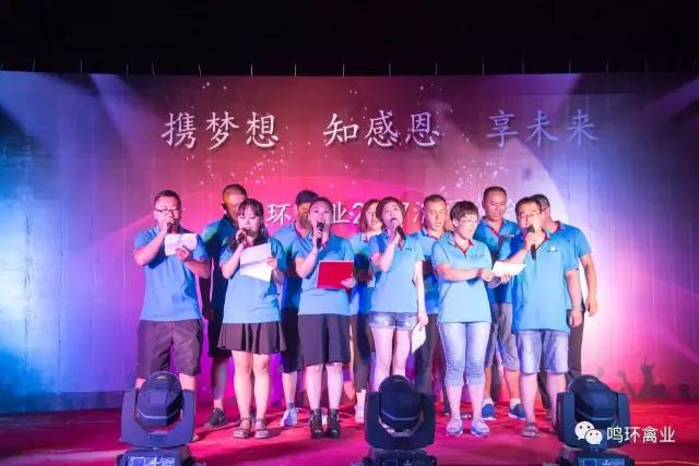 晚上18:58分,鳴環(huán)禽業(yè)2017年“攜夢想 知感恩 享未來”消夏晚會正式開始,鳴環(huán)禽業(yè)的親友團及公司員工、家屬等200余人參加了晚會。