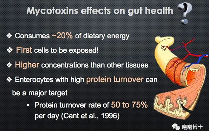 既然從理論上說,腸道直面霉菌毒素的量在身體各器官中算是最大的、又因為高蛋白周轉(zhuǎn)成為容易攻擊的目標,那么腸道健康應該是霉菌毒素研究的重點吧?然而直至今天,我們對于霉菌毒素在動物腸道的影響還并沒有很全面的了解。